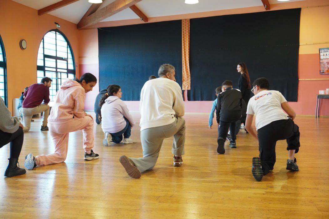 La journée commence par un échauffement commun entre les CP et les adolescents du collège Joseph Sébastien Pons en salle de danse avec Moos. Pour garder leur énergie, les CP ont peaufiné leur chorégraphie. Des rumeurs courent qu’une deuxième aurait vu le jour tellement ils étaient motivés ! Sur du Gims ou même sur Golden la fameuse musique de k-pop. Tout le monde danse, maitresse et AESH comprises !