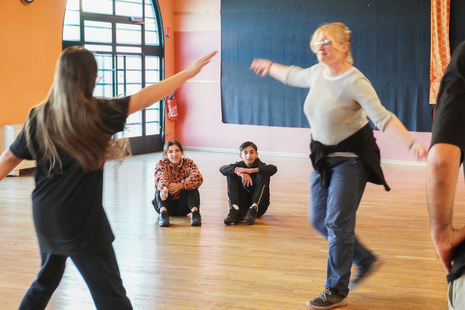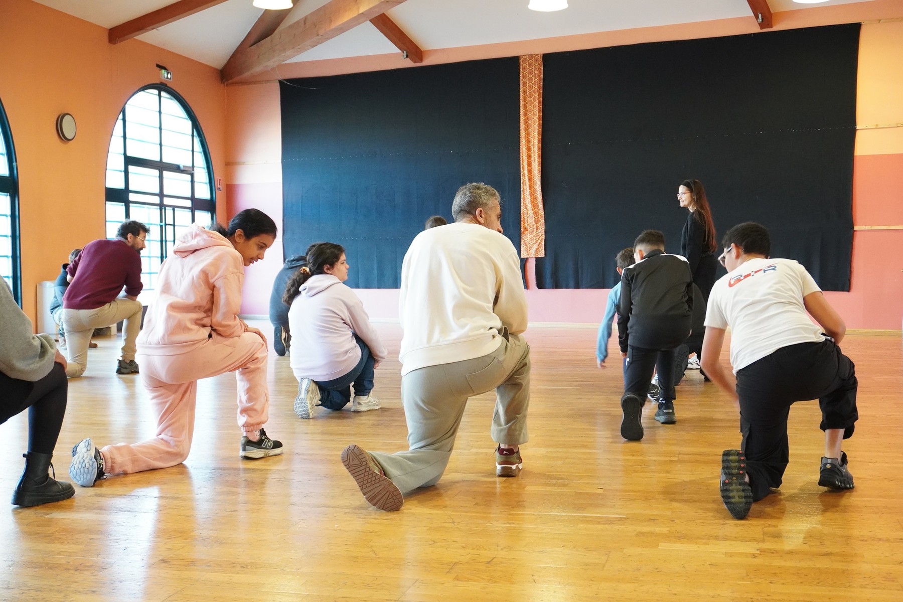 La journée commence par un échauffement commun entre les CP et les adolescents du collège Joseph Sébastien Pons en salle de danse avec Moos. Pour garder leur énergie, les CP ont peaufiné leur chorégraphie. Des rumeurs courent qu’une deuxième aurait vu le jour tellement ils étaient motivés ! Sur du Gims ou même sur Golden la fameuse musique de k-pop. Tout le monde danse, enseignant.e.s et AESH comprises !