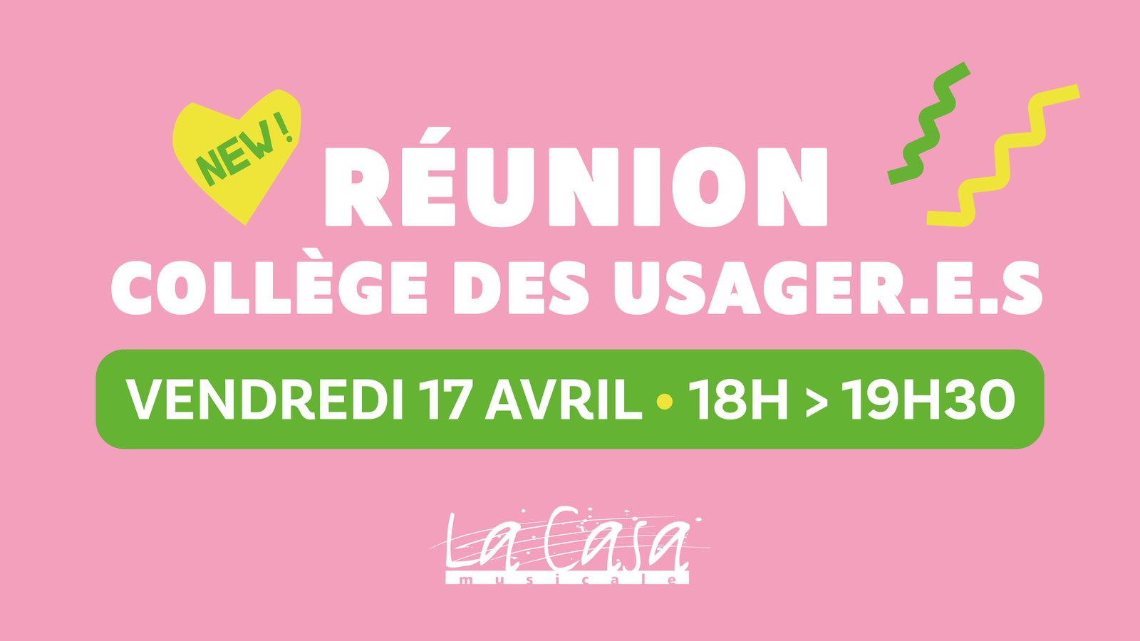 En participant aux ateliers, en réservant un box de répétition ou en vous impliquant comme bénévole, vous faites désormais partie de la grande famille de la Casa Musicale — et donc du Collège des Usager·e·s! Pourquoi ce Collège ? Le Conseil d’Administration a nouvellement créé cet espace pour vous associer encore plus à la vie de la Casa Musicale. L’objectif ? Écouter vos idées, échanger et construire ensemble une Casa qui continue à répondre à vos préoccupations et à se renouveler.